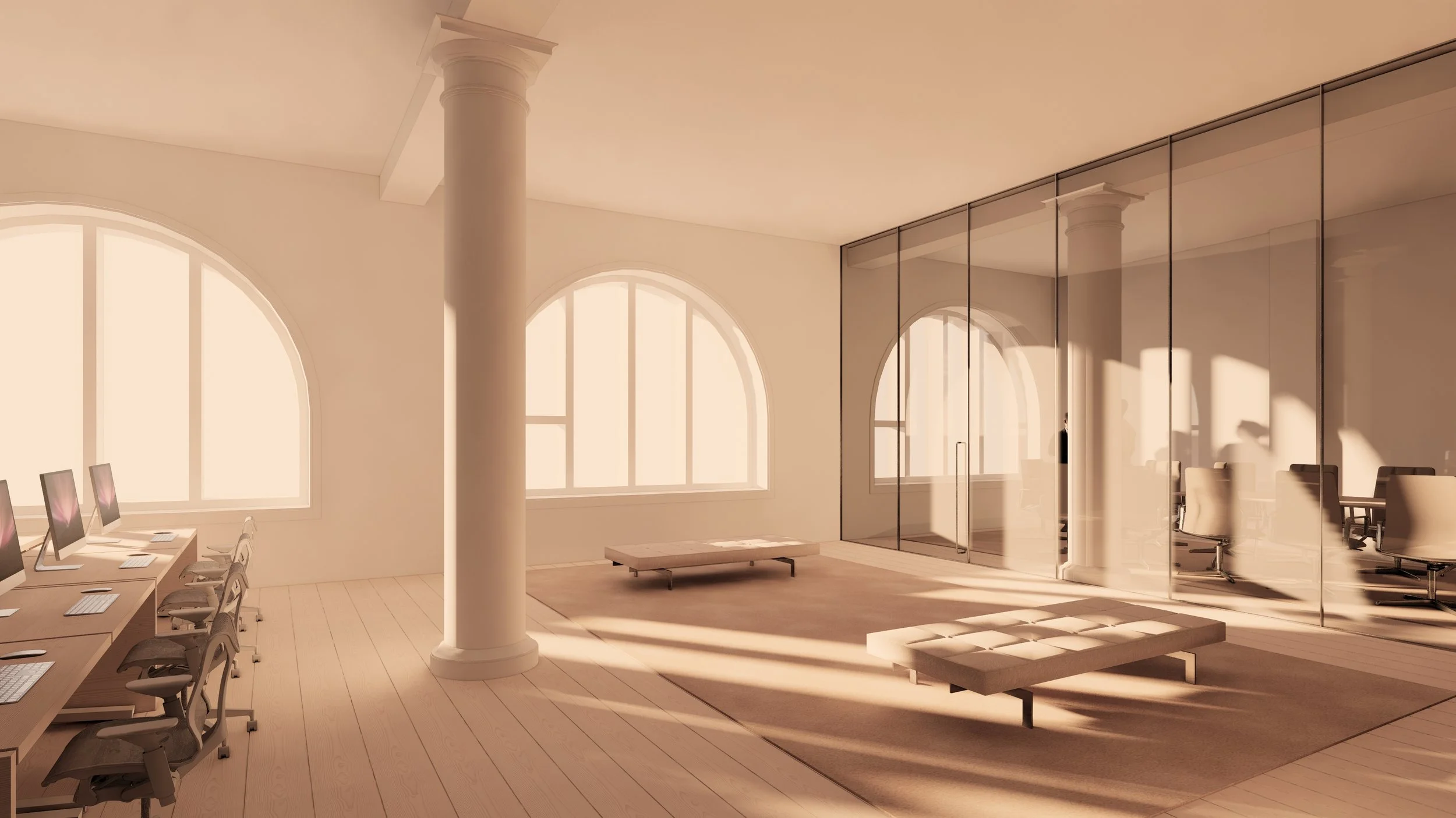 The concept takes cues from the intelligence behind the company’s product, using thoughtful, structured systems to shape the space. Glazed Avanti partitions and Vitsoe shelving bring a sense of clarity and order, offering a balance between openness and privacy. The result is a workplace that feels functional, calm, and adaptable.